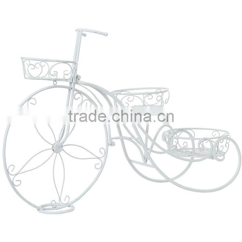 garden decoration Vintage Parisian Style Tricycle 3 Tier White Metal Planter Display Stand / Flower Pot Holder / Plant Rack