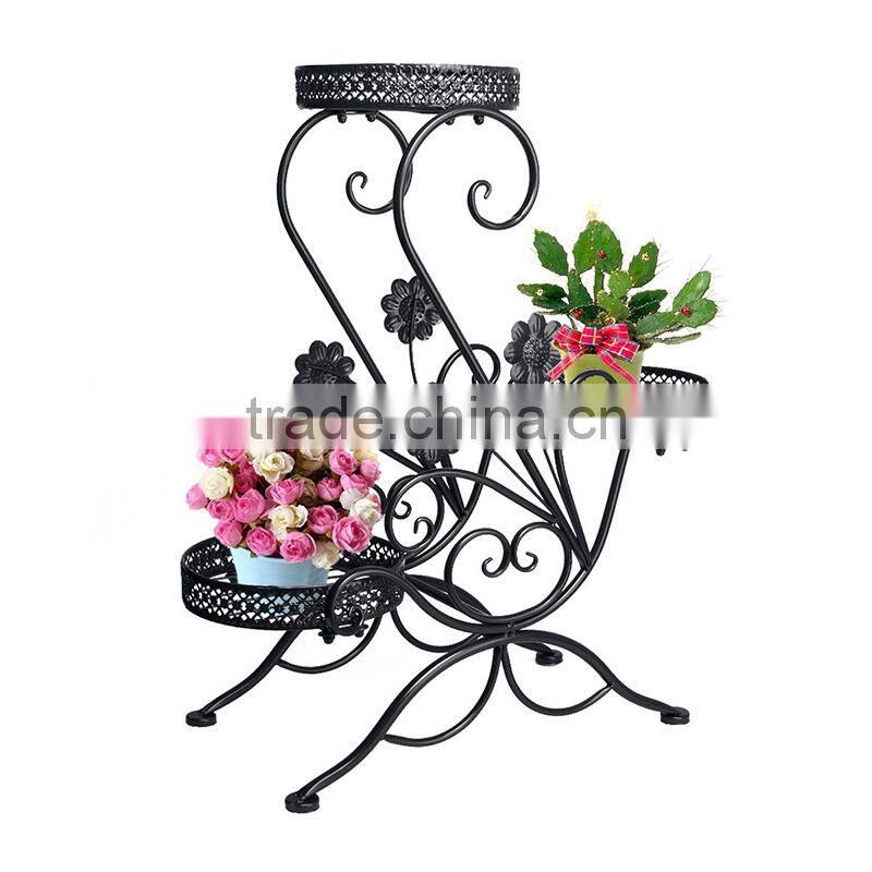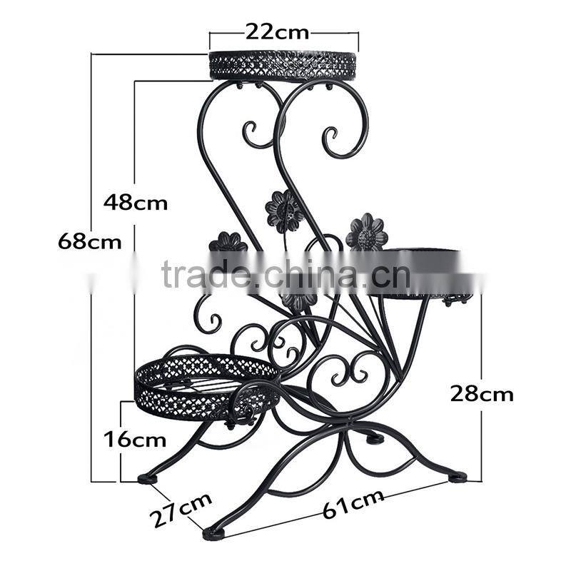 3-Tiered Scroll Decorative Metal Garden Patio Standing Plant Flower Pot Rack Display Shelf Holds wrought iron flower stand