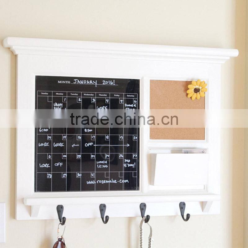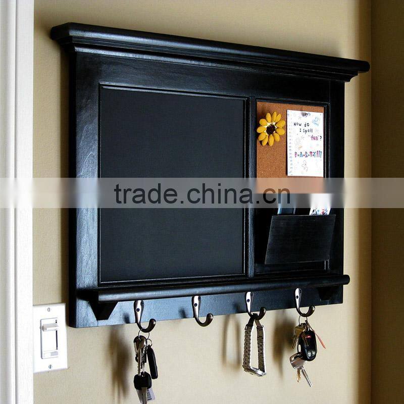 Home > Products > Hooks/wall shelf with hook > Home Decor Wood Wall Mounted Bulletin Board Entryway Chalk Board Mail Sorter Rack With Key Hooks and BlackBoard
