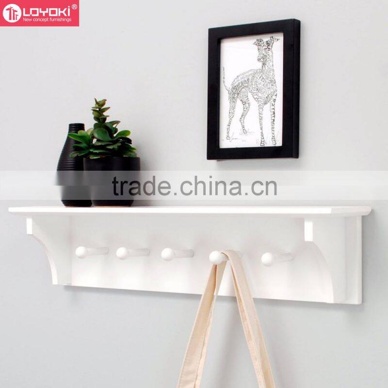 2016 high quality Floating Entryway Shelf and Coat Rack MDF wood wall shelf with 6 hooks wall display key holder wall shelf