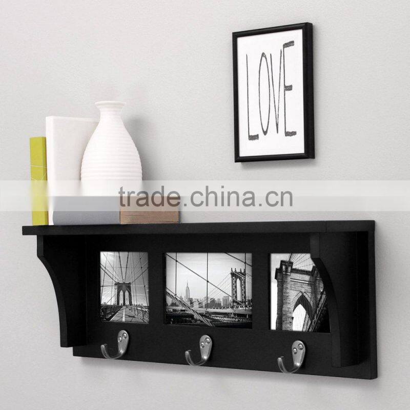 Wall Shelf and Picture Collage with 3 Hooks18.5-Inch by 7-Inch, Holds 2- 4 by 4-Inch and 1- 4 by 6-Inch Photo wall mount hook