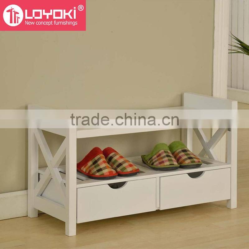 2016 New Design Mdf Wood Shoe Storage Bench With 2 Drawers Shoe Rack Wholesale