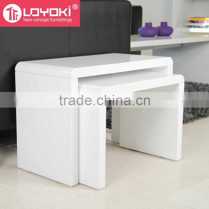 Home Scandinavian Style Nesting Coffee Table MDF Wood Glossy Side Table Set of 2