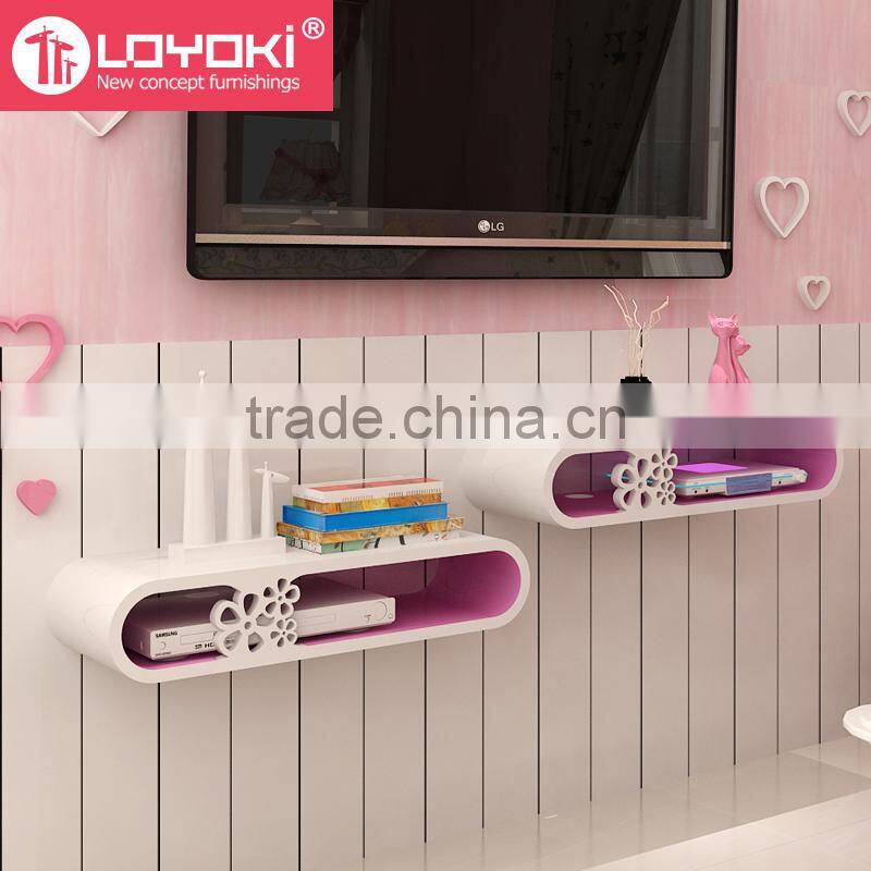 home furniture Wall Mounted Audio/Video Console new design MDF wood practical wall shelf with Carving flower TV console