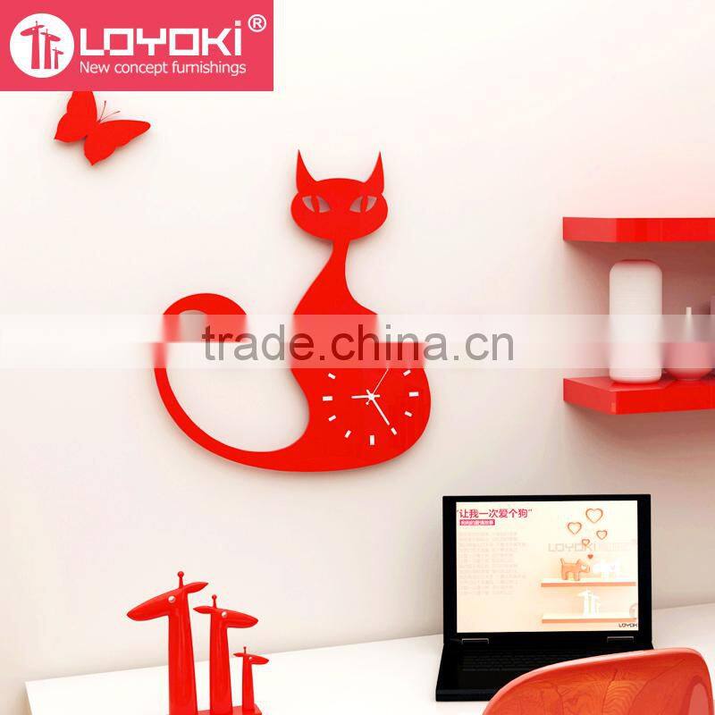 Wall hanging home decorative wall mounted clock new diy design lovely cat shape wooden wall clock
