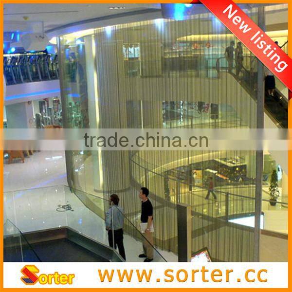 Metal mesh drapery is a new kind of building decoration materials, which are widely used in building elevation, room dividers, the ceiling treatment, balconies, hotels, concert halls, office buildings, exhibition halls, shopping malls,stage backdrops, showing charming effects and romantic feelings under light.