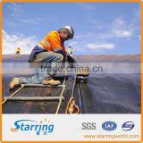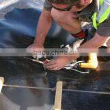 Seamed by fusion welding ,heat is applied directly to the Geomembrane panels by a motorized hot wedge welder .The panels are then routed through a series of rollers that fuse the material together .