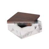 Marble Efffect Wood Lid Concrete Jewelry Box Square Shape