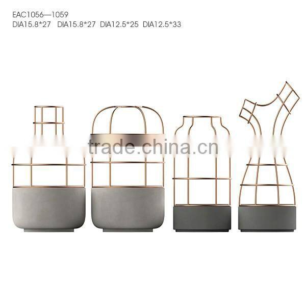 Home Decoration Concrete Flower Pot Metal Frame Concrete Plant Pot