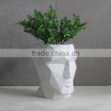 White Man Face Geometry Concrete Planter Pot