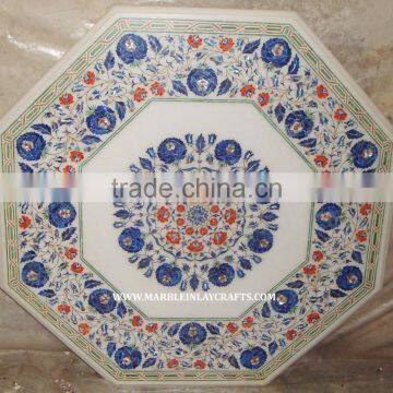 Octagonal White Marble Inlay Coffee Table Tops, Beautiful Marble Inlay Table Top