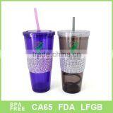 2016 New Design Kids Plastic Mugs With Diamonds and Straw