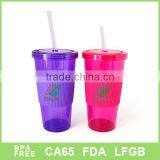 2015 New Design Colored Plastic Tumbler With Straw