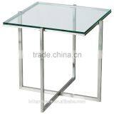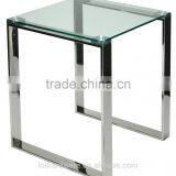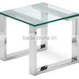 Square Polished Durable Stainless Steel Living Room End Side Table With Glass