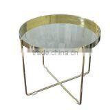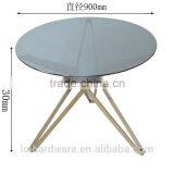 Made in China Metal Type Living Room Furniture Round Shape Glass Top Table With Folding Metal Frames