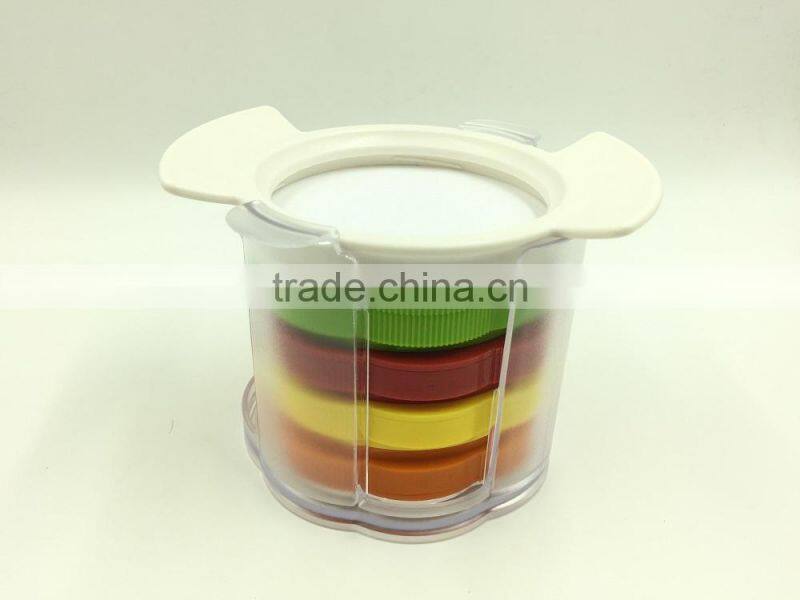(with 1 handle & 4 fruit cutter blades, one small cutting board and one storage container)