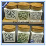 Coffee Tea Sugar Ceramic Storage Jar With Bamboo Lid