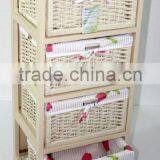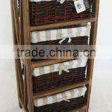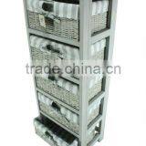 Wooden Cabinet of 4 Wicker Drawers With Liner