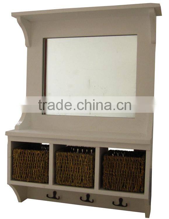 Cottage Collection Bathroom Wall Cabinet With 3-rush Basket, Soft White Finish