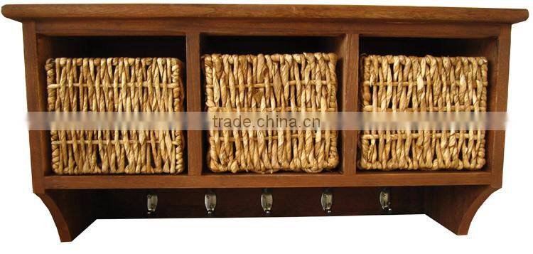 Cottage collection wall cabinet with 3-rush basket, soft white finish