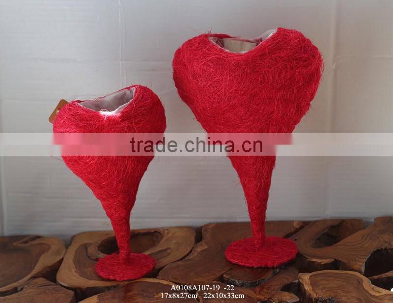 a unique valentine sisal flower pot to artistically display your favorite plant, succulent, votive candle, or tealight.
