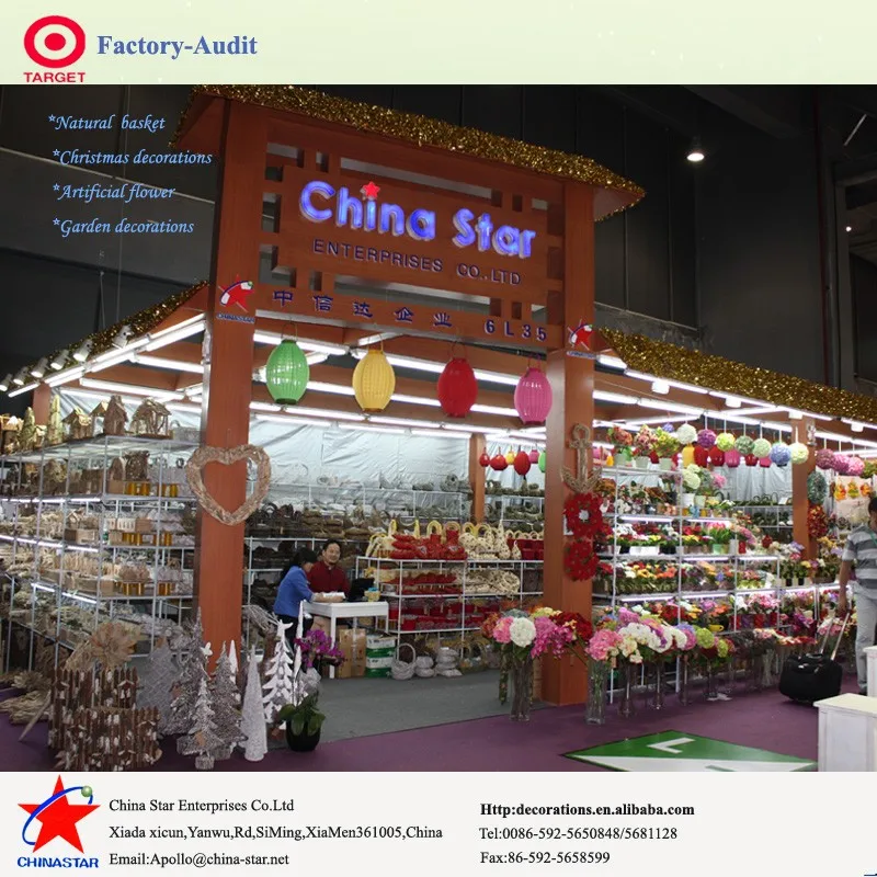 Since 1991 ,we are dedicate to all kinds of natural decorations ,including basket ,wood candle holders ,wreath ,ball ect ornament , from a samll family workshop develop to 18000 square meters modern factory ,our product became more and more popular .now our customer are over sea including many big chain stores ,like Target ,Hobby Lobby , walmart ect ,annual value among 80-100 millon USD