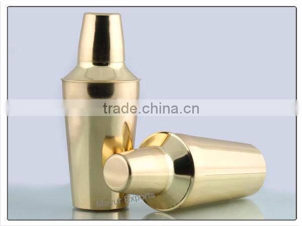 We offer a very wide selection of 3 Piece Cocktail Shakers perfect for behind the bar . The Deluxe Three Piece (also called Cobbler) Shaker Deluxe has a couple notable differences than the standard 3 piece variety. The top strainer section fits over the tin, which combined with ornamental ridge allows for a bit more grip in use and separation. The cap fits snug on top to prevent spillage. Perfect for shaking up those Martinis.
