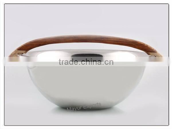 The wood grip on this ladle is easy to hold and use. Its stained finish matches the wood handle on our copper bucket.