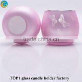Votive Candle Holder Bulk Pink Butterfly Charms With a Floral Laser Cut Design Glass Candle Container