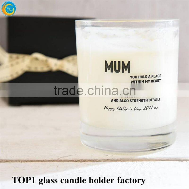 Custom Embossed Mason Jars Glass Candle Holder With Metal Trim