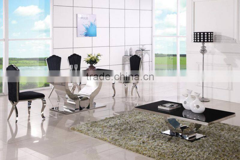 A8035 Modern design clear glass top dinning table with stainless steel feet