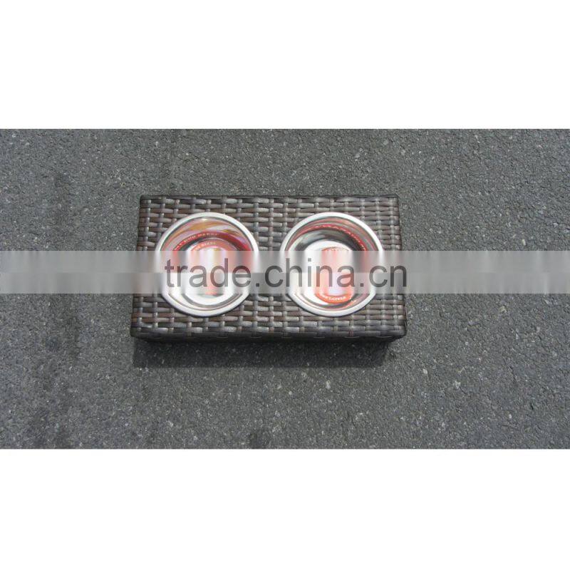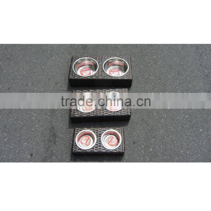 Exquisite stainless steel pet bowl with rattan frame for pets