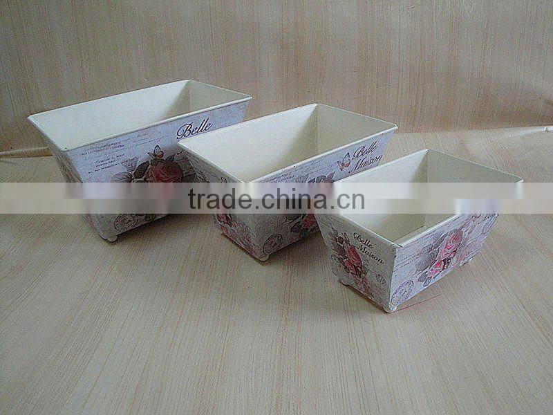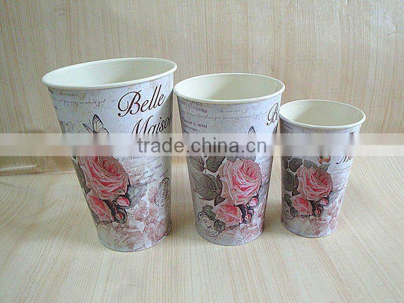 Modern Outdoor Antique Zinc Decal Printing Metal Flower Pots Planters