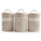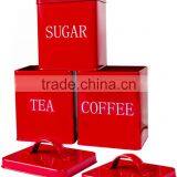 Hot Sales Set of 3 Attractive Home Metal Sugar Tea Coffee Canisters With Bamboo Lid