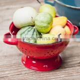 Vintage Enamel Metal Fruit Colander Vegetable Basket Kitchen Strainer With Double Handles