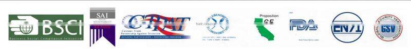 Our factory has passed BSCI audi of EU market, Sedex and SA 8000.