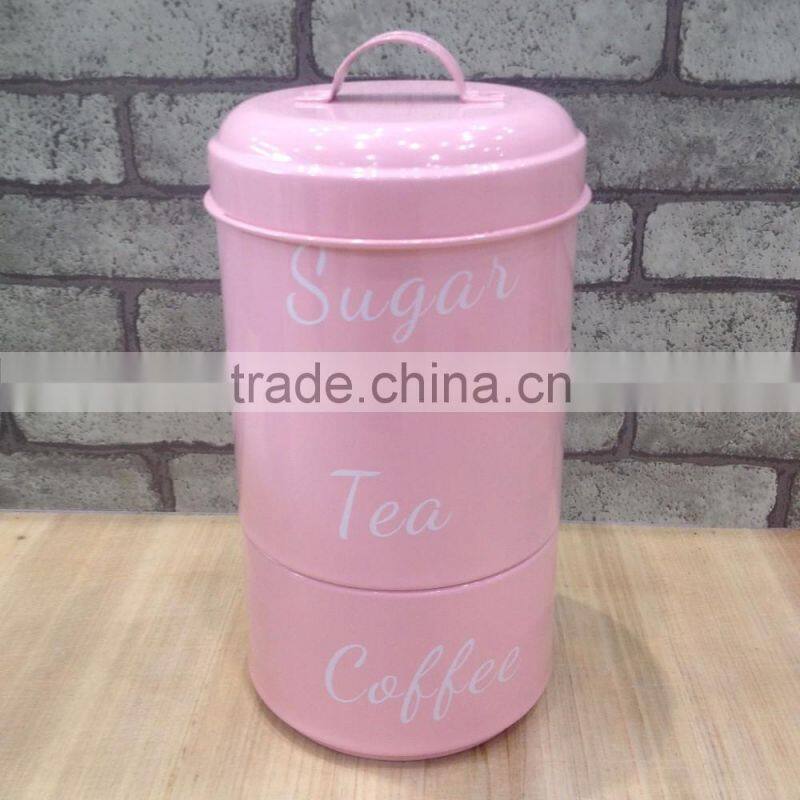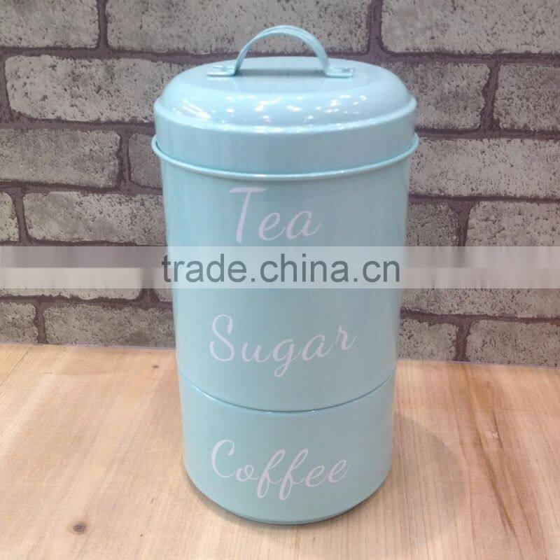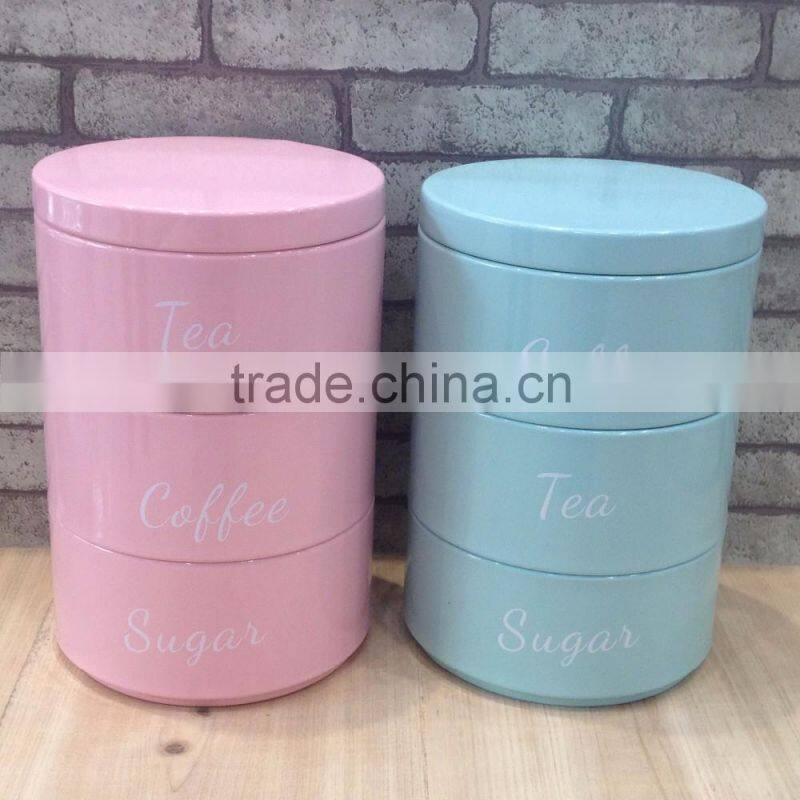 1.3 Stackable Coffee Tea Sugar Set Metal Kitchen Canisters is made of Galvanized Zinc Metal or Tin Metal or Stainless Steel,lead free and non-toxic.