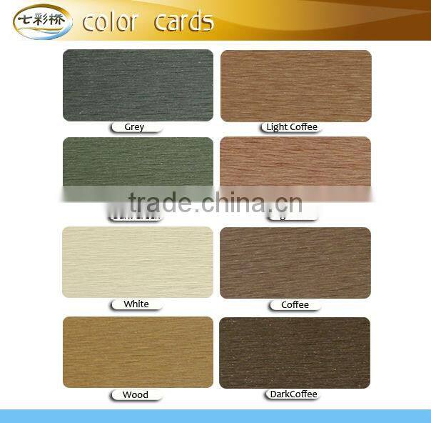 | Advantage: | Waterproof,mildew resistant,Moisture resistant,no rotting,low flame spread ; Available in different colors and wood grain design ;Green ecological, Innovative technology, Lifestyle |