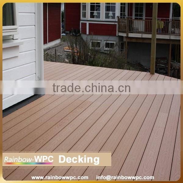 Our WPC decking is made from 60% recycled hard wood fibers and 40% recycled polyethylene, bonding agent, addictives and tint.There is no need to paint, seal, stain or waterproof, and is ideal to use wherever durability and weather resistance are required, as it is eco-friendly and long-lasting.The decking is very hard wearing, does not absorb water, attract mould or fade in colour, and will not rot, splinter, split or warp.Our WPC decking can be worked just like timber using standard woodworking tools and it’s easy to clean and maintain.