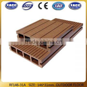 wood-plastic composites (WPC) Decking are manufactured from a combination of polypropylene (34%), wood fiber (60%), and some additives (6%) by using special extruding equipments. It mixes natural wood fiber and plastic perfectly to keep the natural impression of wood but with rich colors of plastic.