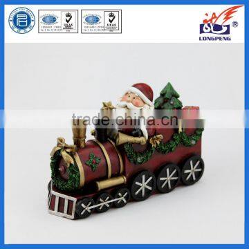 Polyresin Santa Claus on The Train with Led Light for Indoor Ornaments