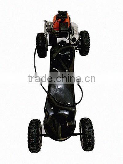 This is a motorized skateboard with low power,which is specially used for sporting and entertainment,with centrifugal toe-wearing clutch.speed reducing on gear,chain transmission fuel saved,assembled with powerful single cylinder air cooling,two stroke engine