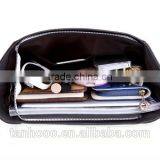 PU Leather 25*14 cm Fashion New Design Black Women Makeup Bag With Cross Grain