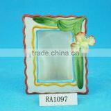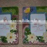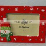Ceramic Photo Frame With Snowman Design, Hand Painted.