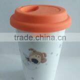 Factory Direct Ceramic Porcelain Double Wall Mug With Silicone Lid for Wholesale