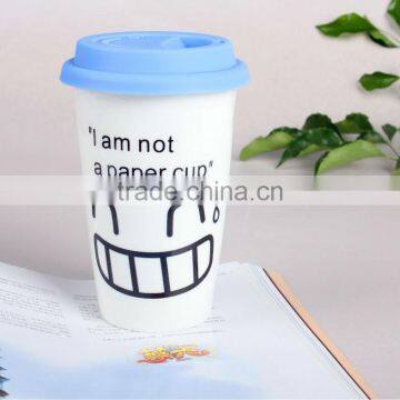 1.double wall mug with silicon lid2.material:porcelain,ceramic
