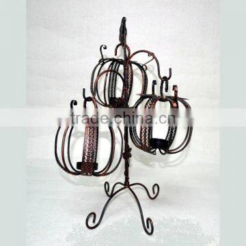Three Pumpkin Shape Candle Holders With Stand