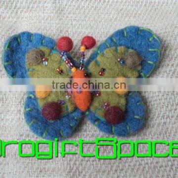 2017 Blue & Green Color Felt Butterfly Brooch Keychain Made in China