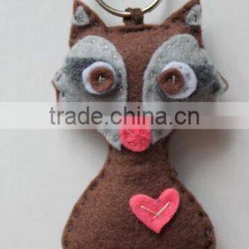 New hot sale China animal design cheap wholesale fashion key ring products promotional gift craft fabric felt wolf keychain