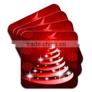 2017 Wood Red Modern Art Christmas Tree With Snowflake Coaster Made in China